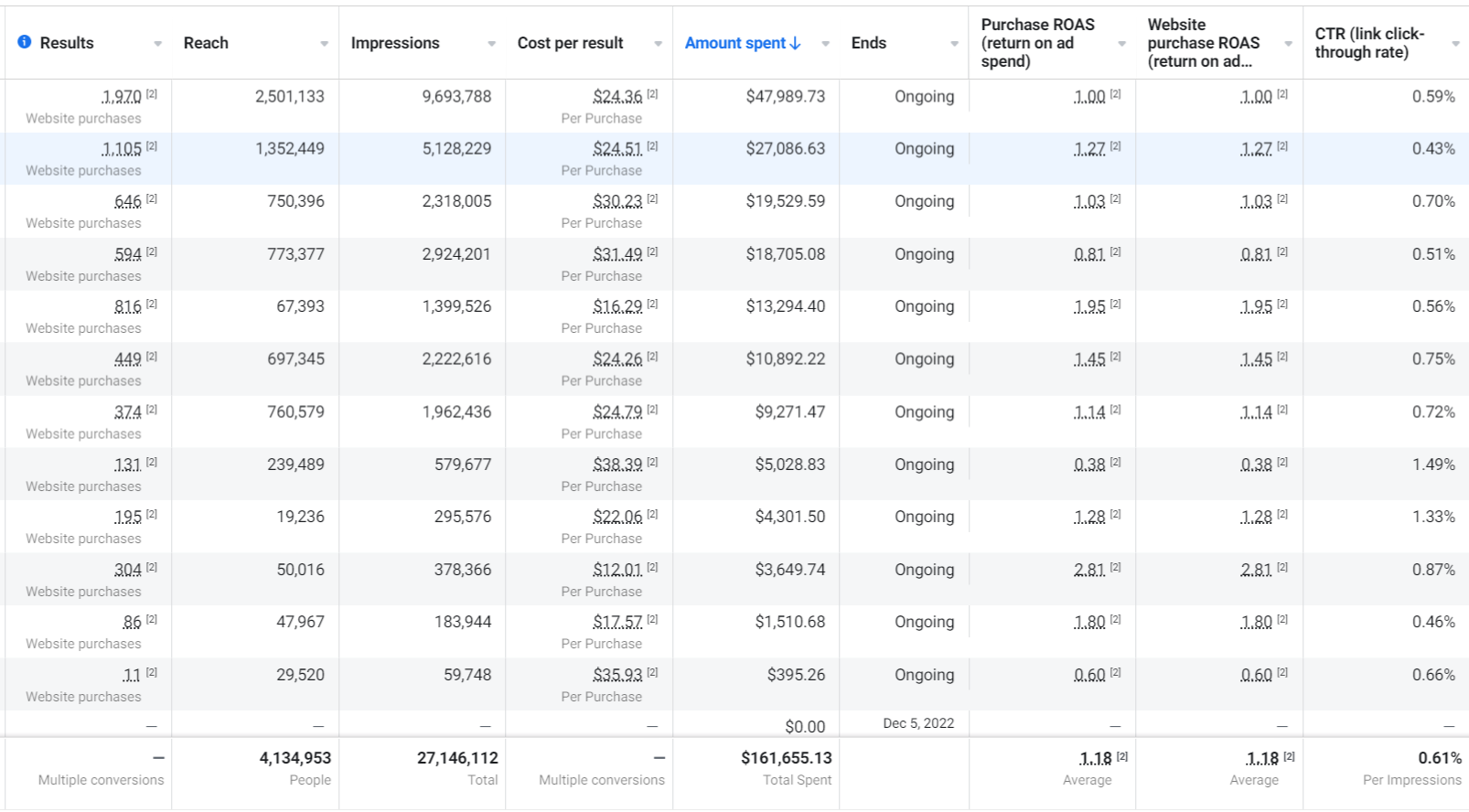 For the 5 months prior to hiring us, they generated a CPA of around $30 with an average ROAS of 1.18X (slightly above breaking even).