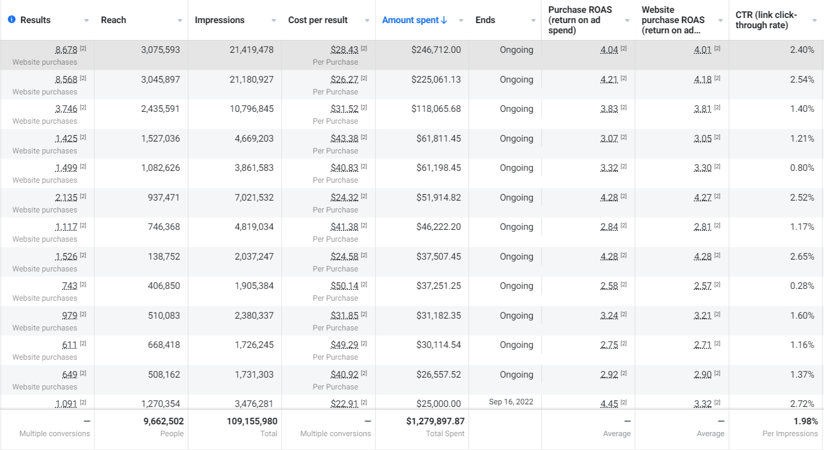 In the second month, we were able to scale down the account to about $170k from $210k per month; this allowed us to increase efficiency and reduce wasted ad spend. Since then, the account is spending over $250k per month at an average of 3.5X ROAS.